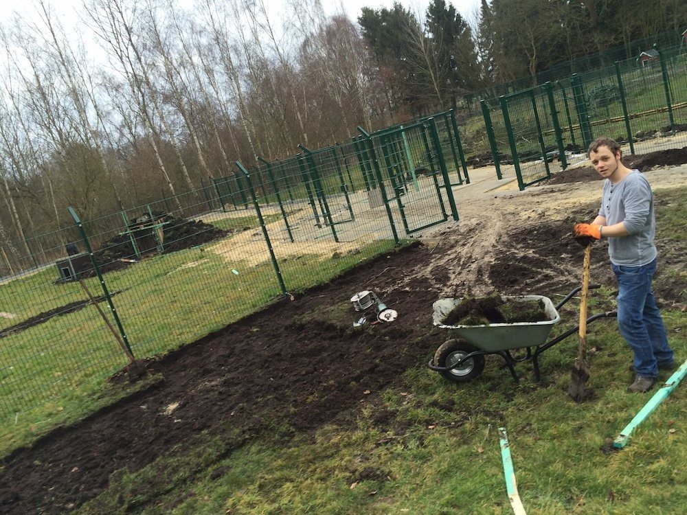 Es geht voran! Heute haben wir endlich mal…. Rasenkanten abgestochen! Der zukünftige Futterplatz soll gepflastert werden. 2 kaputte Spaten später war es dann endlich geschafft!!! Ein – – – tattaa: Loch :-( Morgen geht´s dann weiter.