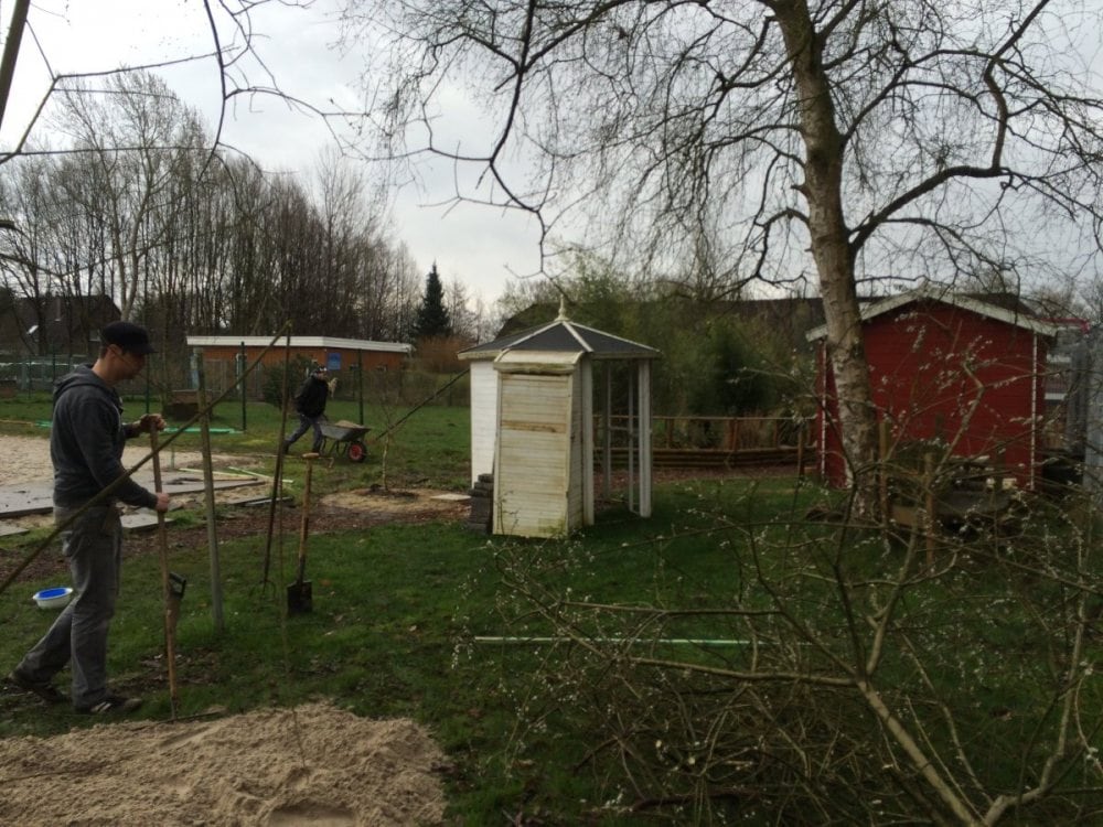 Doofes Wetter… Aber nützt ja nichts. Wir haben heute unsere Vogelvoliere umgestellt, damit wir mehr Platz für die Hundehütten bekommen. Dafür mussten wir zuvor eine neue Fläche pflastern. Auch im Gehege haben wir fleißig weitergearbeitet. Wir sind nun zu 75% rum. Die Vogelvoliere steht nun im zukünftigen Aussichtsbereich für dogsplace.