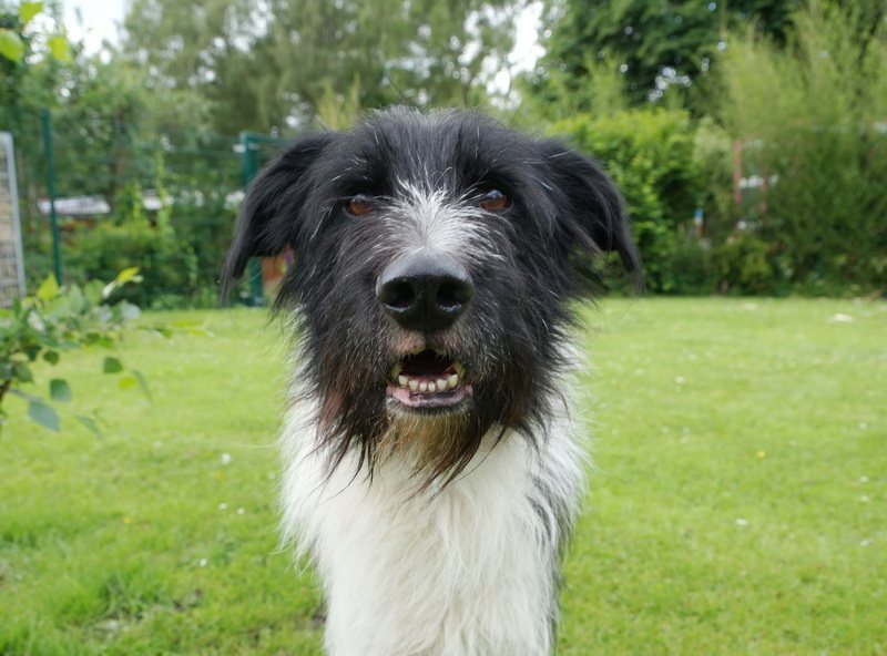 Hund Fritz ist in keinem guten Pflegezustand. Sein Fell ist zottelig, an einigen Stellen verfilzt und hat seine schwarze Färbung eingebüßt. Außerdem hat er Wunden an den Beinen und ist viel zu dünn. Nun wird er erstmal ordentlich gepäppelt, kriegt viel köstliches Futter und wird dem Tierarzt vorgestellt.