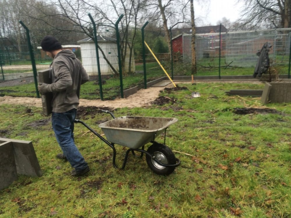 Tag bis jetzt. Die Kante ums ganze Gehege ist jetzt zu 90 % gesetzt. Danke an