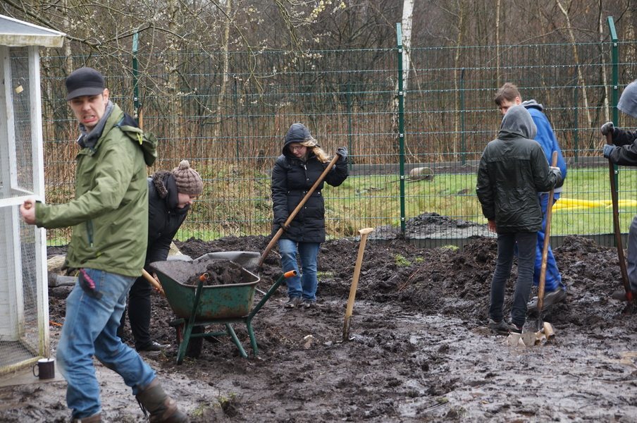Wir sind heute ziemlich stolz auf unsere Truppe. Teilweise war es grenzwertig bei diesem Sturm weiter zu arbeiten. Toll ist aber zu sehen, mit wie viel Herzblut, Ãberzeugung und Kraft auch heute wieder an der Zukunft des Tierheims von so vielen jungen Menschen gearbeitet wird. Ist schon ne echt tolle Truppe hier! Muss man mal sagen.