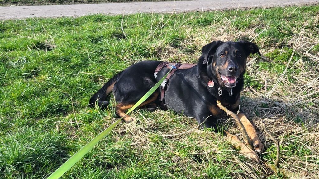 Zur Vorgeschichte: Ich lernte im Juli 2021 meinen Partner kennen, der auch seinen Hund Lando mit in die Beziehung brachte. Mein Partner bekam ein halbes Jahr später die Diagnose ALS. Ich pflegte ihn zuhause 24/7 vom ersten bis zum letzten Tag, kümmerte mich um Lando, um den Haushalt und musste auch noch – wenn auch stark reduziert – meiner selbständigen Tätigkeit nachgehen. Im Oktober 2023 ist mein Partner verstorben. Seit dieser Zeit versuchte ich, „irgendwie“ alles unter einen Hut zu bekommen. Letztendlich ist es aber so, dass wieder ich vollends an meine Grenzen komme, da ich es einfach nicht schaffe, Lando das zu bieten, was für einen Hund notwendig wäre, damit er halbwegs körperlich und mental ausgelastet wird. Er hat es nicht verdient, dass er seine restlichen Lebensjahre in der Warteschleife verbringt, bis endlich mal jemand Zeit hat. Daher habe ich mich dazu entschieden, ihn in gute Hände weiterzuvermitteln, die ihm mental und zeittechnisch gerecht werden können.