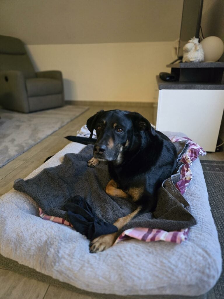 Die Vermittlung erfolgt gegen eine Schutzgebühr und Platzkontrolle. Es werden natürlich alle Dinge mitgegeben, die Lando hier daheim hat (Sicherheitsgeschirre, Maulkorb, breite Halsbänder, Leinen, Decken, Liegematten etc). Ich habe ihm vor einiger Zeit zusätzlich ein orthopädisches Hundebett gekauft, was er wirklich liebt. Ebenso eine erhöhte Futterstation, die er dankbar angenommen hat.