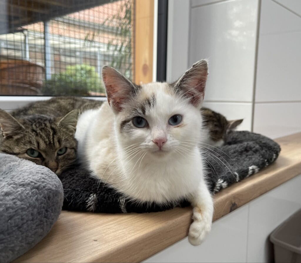 Der kleine Hitchcock ist mit seiner Mutter und seinen Geschwistern im Tierheim gelandet, und leider haben alle einen Schnupfen mitgebracht. Bei Hitchcock hat sich dieser Schnupfen leider schon zu einer hartnäckigen Lungenentzündung entwickelt, die ihn tüchtig husten und schniefen lässt. Er ist nun wie der Rest seiner Familie mit den richtigen Medikamenten versorgt und wir hoffen, dass die Ruhe in der neuen Katzenstation ihr Übriges zur Genesung beiträgt. Auch das miteinander Kuscheln hilft bestimmt, wieder schnell gesund zu werden. :-)