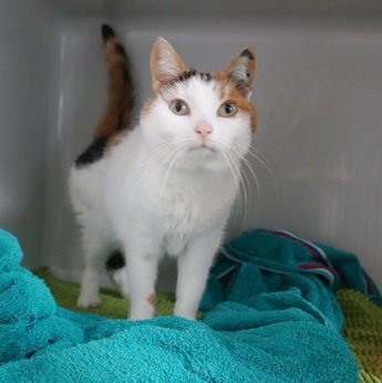 Die „bunte Amy“ ist nicht gut zuwege: sie ist ganz mager und die Blutgefäße ihrer Augen sind ganz feuerrot. Ihr wurden Zähne gezogen, möglicherweise hat sie sich von der OP nicht so ganz erholt. Sicherheitshalber wurde sie in die Quarantäne gesetzt, wo beobachtet wird, ob sie frisst, wo sie bekuschelt wird, damit sie so schnell wie möglich wieder obenauf ist!