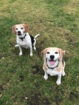 Moody ist der agielre von beiden. Er ist ein schlaues Kerlchen, hat noch viel Power und liebt längere Spaziergänge. Auch er kennt Kinder und könnte mit entsprechenden Rückzugsorten zu älteren Kindern ziehen. Moody ist ziemlich schlau und mag gerne Tricks lernen und beschäftig werden. Altersentsprechend schläft auch er gerne und liebt es, im Garten zu liegen oder zu spielen. Moody beherrscht das typische Beaglegeheule in Perfektion und bellt auch mal.