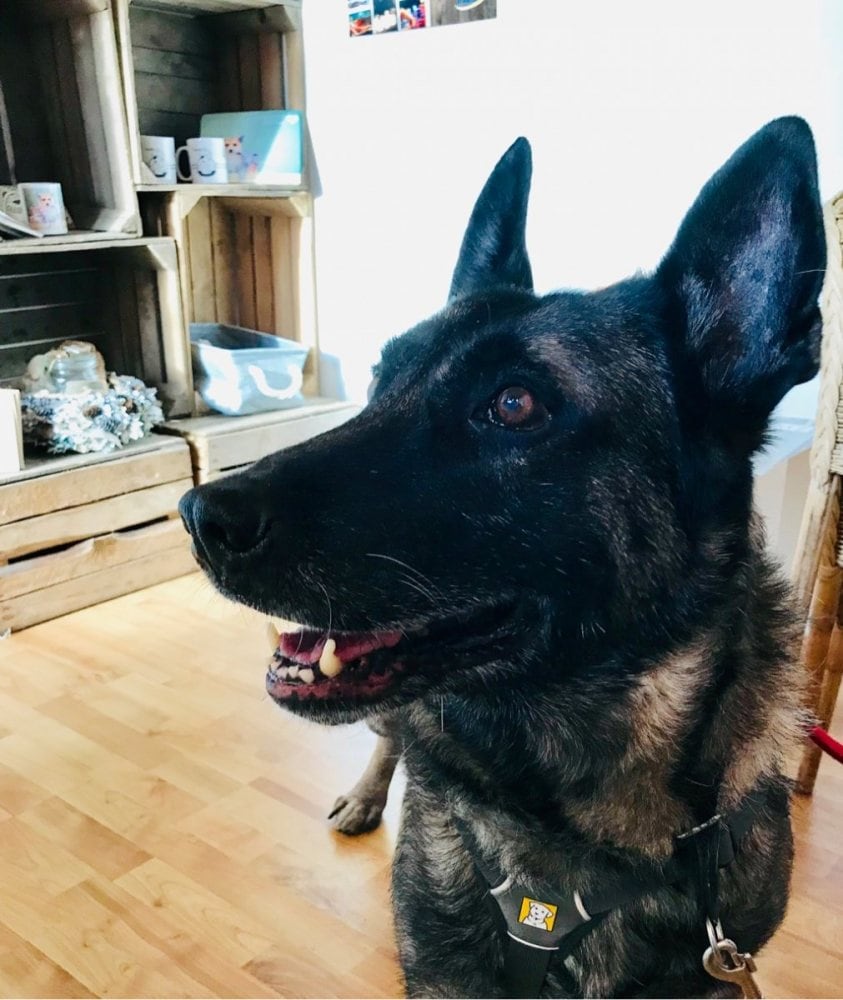 Schäferhund Barry ist schon acht Jahre alt und hat das ein oder andere Zipperlein mitgebracht: Leckstellen an Pfoten, Hinterläufen und Vorderbeinen, verschmutzte Ohren und Gebilde an den Zehen. Der Tierarzt wird ihn sich genau anschauen, damit wir wissen, was Barry alles hat und ihn richtig behandeln können.
