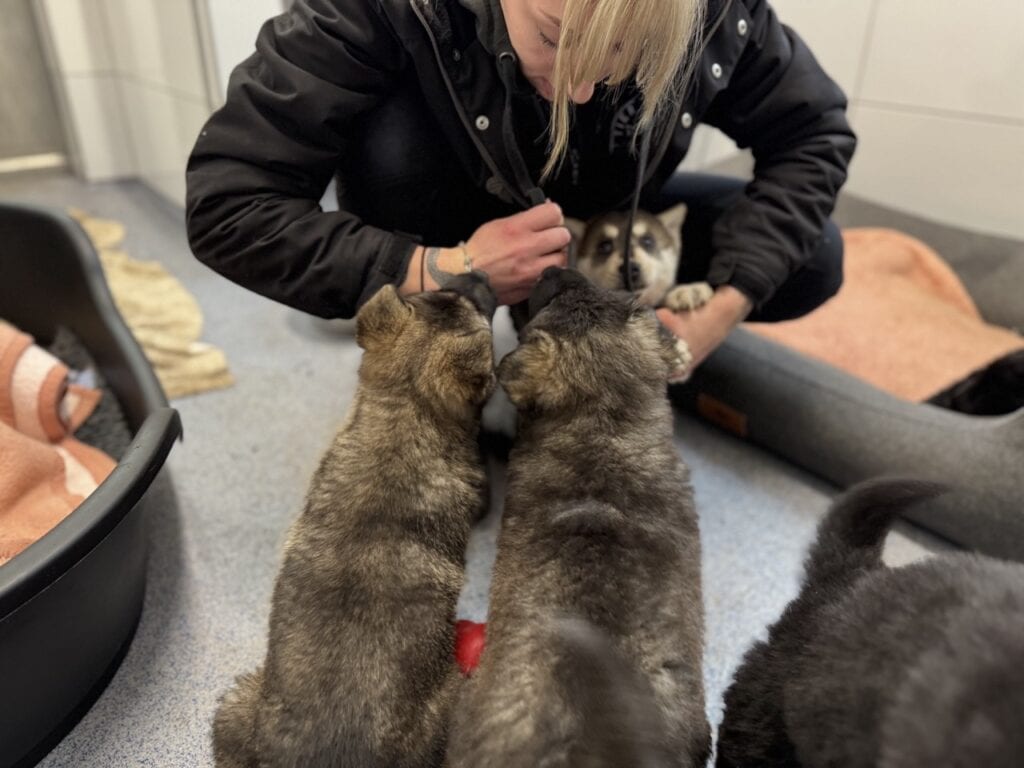 Die Mama ist eine ganz Liebe und lässt uns zum Glück ihre Kinder anfassen und untersuchen, und ist selbst beim Tierarzt ganz freundlich. Die Sechs werden nun erstmal parasitär behandelt, denn sie haben Würmer und auch Durchfall, und dann päppeln wir Mama Bailey wieder hoch, denn sie ist viel zu dünn.