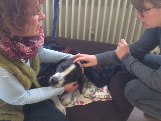 Beate war da. Er legt seinen Kopf auf ihre Hand und entspannt sich. Es