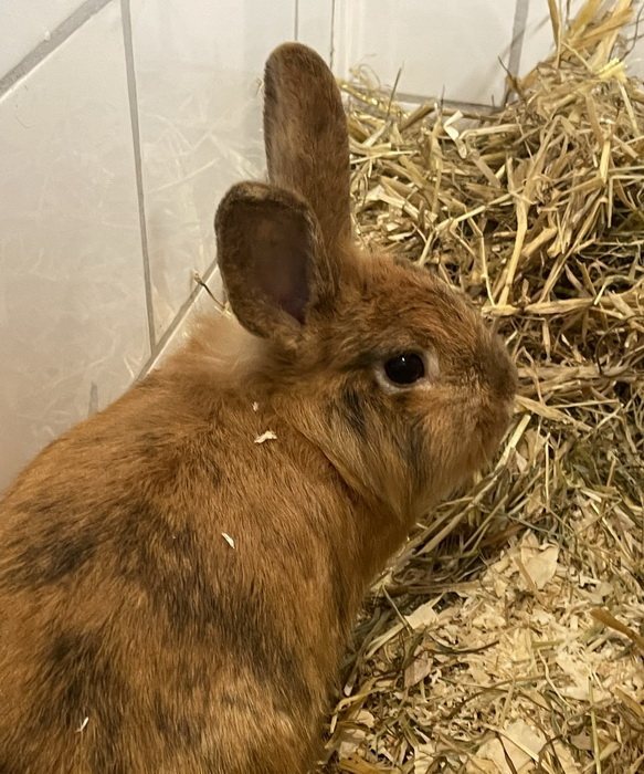 Bonita ist ein Kaninchen, das wir über unseren Tierarzt bekommen haben. Unser Tierarzt hat bei der Erstuntersuchung direkt erfühlen können, dass ihr dicker Bauch nicht nur von zu viel Futter gekommen ist. Hochtragend sitzt sie jetzt hier in einer Bucht und genießt die Ruhe. Jeden Tag gibt es extra viel zu fressen und ihr Gehege wird kontrolliert, ob die Babys schon da sind. Ansonsten wird sie den restlichen Tag in Ruhe gelassen.