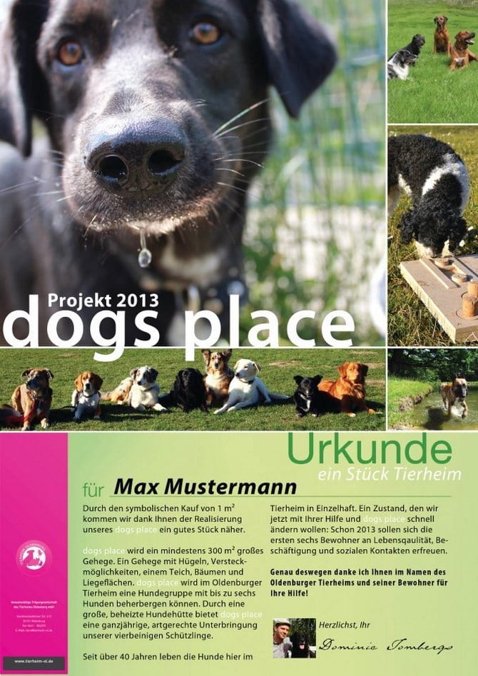 Durch den symbolischen Verkauf von jeweils 1qm der dogsplace-Fläche haben wir die Kosten für den Bau zusammen bekommen.