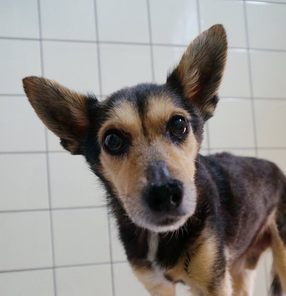 Fundhund Darko, ein niedlicher Kerl, weist vermehrte Hornhautbildung auf der Nase auf, eine sogenannte Hyperkeratose. Behandeln lässt sich diese „Tentakelnase“ (wie wir Tierpfleger sie nennen ;-)) mit einer einfachen Ringelblumensalbe. Darko lässt sie sich jeden Tag geduldig  auf sein Näschen schmieren.
