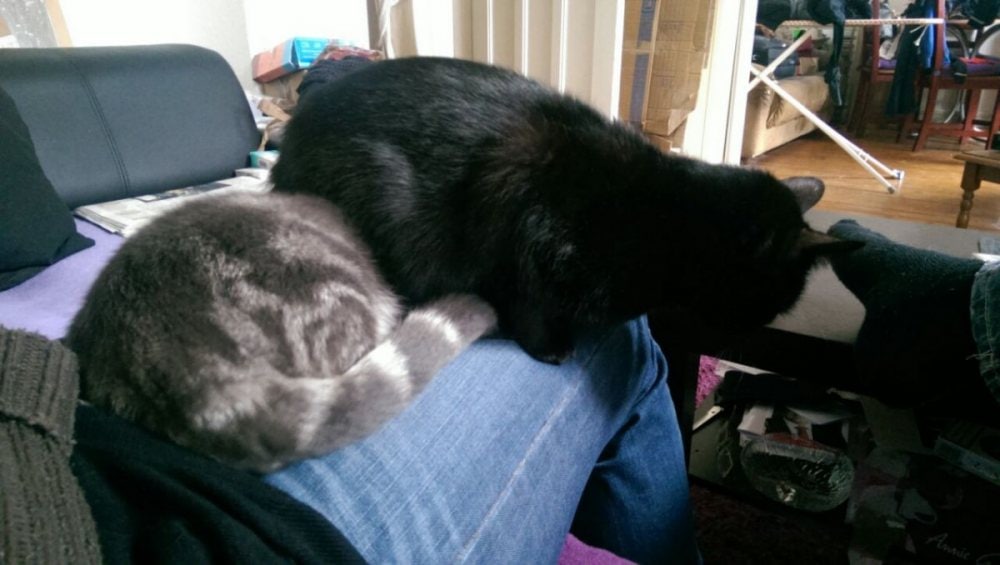 Mit meinem Freund Prinz (der andere Kuschler), wechsele ich mich ab. Mal regiert er, mal ich. Manchmal mögen wir uns gar nicht und es gibt ängstlich einen Patscher auf die Nase. Doch meistens lieben wir uns und machen uns gegenseitig sauber (und knutschen auch schon mal).
