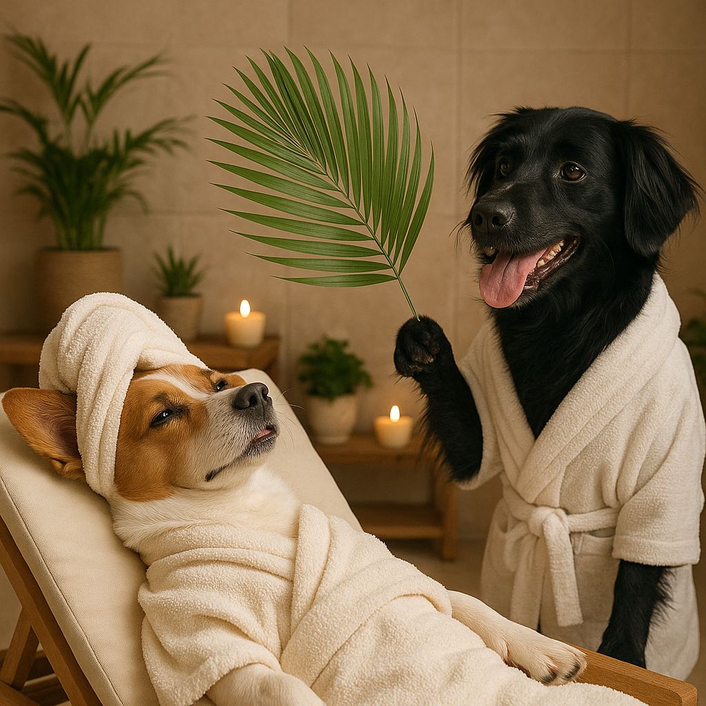 Ihr lieben, gestern war mein vierter Geburtstag und es war ein toller Tag, zuerst eine Runde Wellness mit meinem Bruder Sam …( KI macht’s möglich), es gab Geschenke und natürlich hat meine Menschenschwester Sophie mir eine Hunde Geburtstagstorte gebacken. Ansonsten wurde viel im Garten getobt, zwischendurch ne Runde kuscheln mit Mama & Papa.