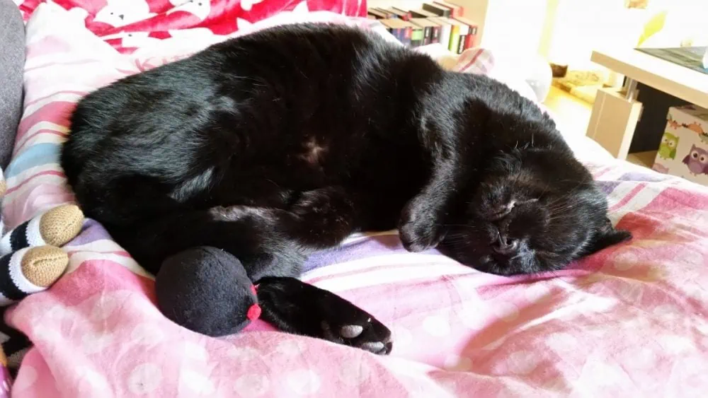 Das Foto zeigt mich bei meiner Lieblingsbeschäftigung: Neben „Mama“ auf dem Sofa liegen und schlafen ^^