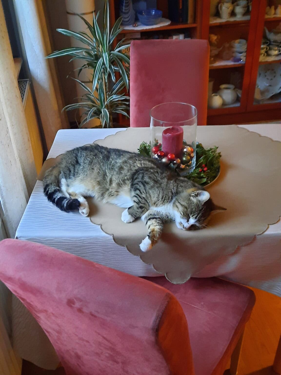 der Seniorkater Theo ist nun seit vier Jahren bei meiner Schwiegermutter. Sie hatte ihr Leben lang Katzen und wollte eigentlich im Ruhestand keine mehr haben. Doch dann kam Corona. Wie so viele Menschen war sie doch ganz schön einsam. Also sind wir mit ihr zum Tierheim gefahren, wo sie Theo traf. Er war schon vermittelt worden, wurde aufgrund seines Schnupfens aber wieder ins Tierheim zurück gebracht und hat sich bei meiner Schwiegermutter direkt ins Herz geschlichen. Zuhause sind die beiden nun ein Dreamteam und verstehen sich blind. Außerdem ist Theo auch ein großartiger Friedensstifter. Im letzten Jahr war meine Schwiegermutter für zwei Monate im Krankenhaus. In dieser Zeit haben sich mehrere Nachbarn aus der Seniorensiedlung um ihn gekümmert, die vorher die üblichen Nachbarschaftsstreits hatten, für die wir Menschen so bekannt sind. Aber wo Theo ist, da herrscht gute Laune. Inzwischen verstehen sich alle Nachbarn richtig gut und Theo macht täglich seine Runde durch die Nachbarschaft. Dort bekommt er Leckerlies, Massagen und gibt im Gegenzug, was nur Katzen geben können. Meine Schwiegermutter sagt: „Mit Theo habe ich den idealen Partner gefunden!“