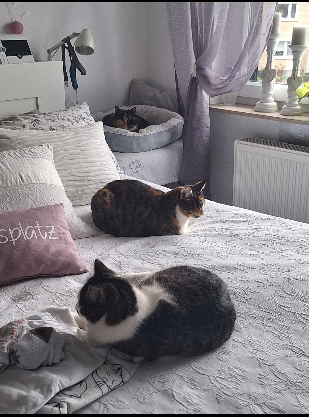 Dort lief uns dann im September  noch ein Katzen Mädchen zu. Wir brachten sie erstmal ins Tierheim, sie hatte ein verletztes Auge und sie hätte ja auch ein Zuhause haben können. Und auch wenn Akira noch nicht so begeistert ist, aber nachdem klar war, das Fine gesund ist und leider nicht vermisst wurde, haben wir sie im Oktober  zu uns geholt. Jetzt haben wir drei hübsche Mädels bei uns. Akira ist noch nicht so begeistert, aber ihre tolle Beziehung zu Cookie stört das nicht. Cookie ist für alle da und hat für jedes Lebewesen sooo viel Liebe übrig, dass wir denken, es wird alles gut werden.