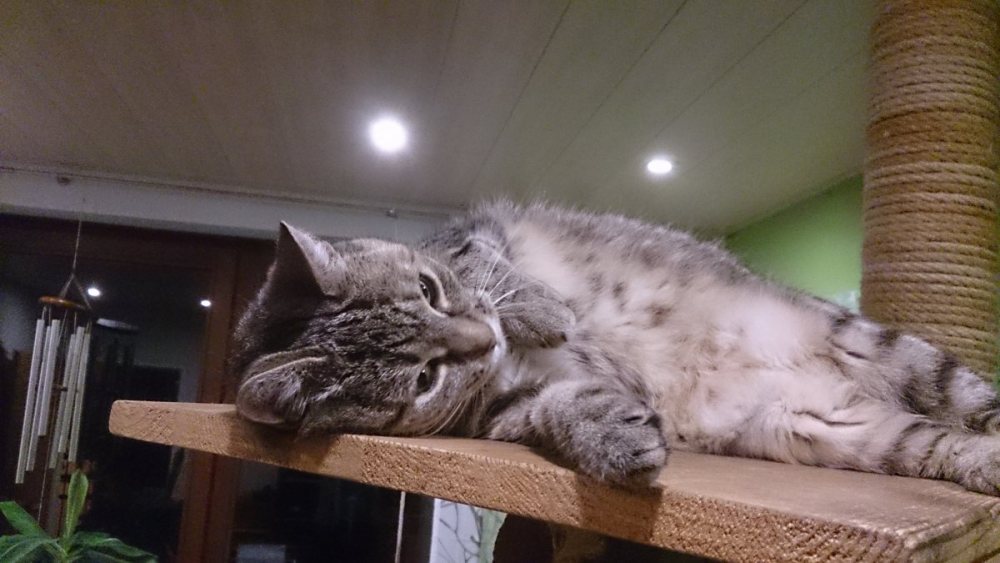 Nun sollte ich aber doch vermittelt werden und dann kam kurz vor Weihnachten mein neues Frauchen und Herrchen an einem Sonntag vorbei und schon war es um uns geschehen. Ich hab‘ mich mächtig ins Zeug gelegt und gleich Vertrauen empfunden, da die Beiden gerade vorher kurz hintereinander ihre beiden Fellnasen verloren hatten und ohne Katzen es richtig doof fanden. Da war es auch kein Thema, das ich ab 2. Januar nach Wüsting umziehe, wo ich schon sehnsüchtig erwartet wurde.Und nun geht es mir richtig gut! Schmuseeinheiten von meinen neuen Zweibeinern; wahlweise auch die Nachbarin, die auch mal füttert, wenn sich meine Besitzer wieder herumtreiben. Auch der Nachbarhund ist okay, da er mir blöde Kater  der Umgebung verscheucht, wenn es mir zu bunt wird und ich sie nicht selber durch den großen Garten jagen will. Ansonsten Nickerchen mit Fensterblick vom Kratzbaum oder auch gerne im Bett oder auf dem Sofa, Auslauf bei Bedarf mit vielen Bäumen und Rankgittern zum Klettern im Garten und alles was eine Prinzessin so braucht um glücklich zu sein.