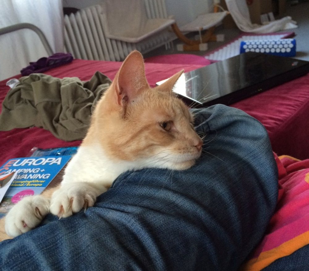 Ende Mai ist Charles (jetzt Frodo) bei uns eingezogen. Die erste Woche saß er nur unter dem Schrank, kam nur nachts zum Fressen raus. So langsam traute er sich dann, auch während unserer Anwesenheit zu fressen – so lange wir uns nicht bewegten.