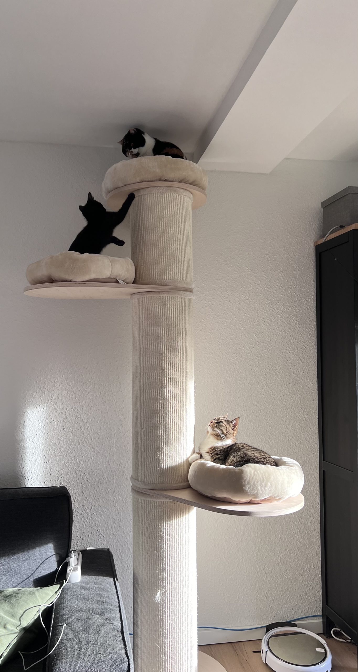 ich lebe jetzt schon seit 28 Tagen bei meiner neuen Familie! Ich esse soviel, dass ich immer einen kleinen dicken Bauch habe. Wenn ich aber mal satt bin, beschäftige ich mich damit meine „Schwestern“ zu nerven, den Tannenbaum abzuschmücken oder Bälle zu apportieren. Außerdem habe ich vom Christkind einen neuen Kratzbaum bekommen! Den teilen wir jetzt alle zusammen!