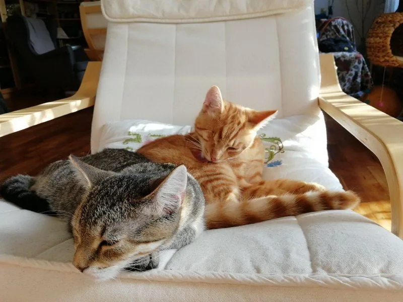 Als ich noch im Tierheim war, hat meine Dosi ja beschlossen, dass ich einen Kumpel mitnehmen darf, und was soll ich sagen: Der kleine Silver (ehemals Karlchen) ist nicht nur mein Kumpel, sondern mein Bruder. Ich passe immer gut auf den kleinen Chaoten auf, denn der hat nur Unsinn im Sinn und braucht manchmal eine starke Schulter – oder einen ordentlichen Datz mit der Pfote.