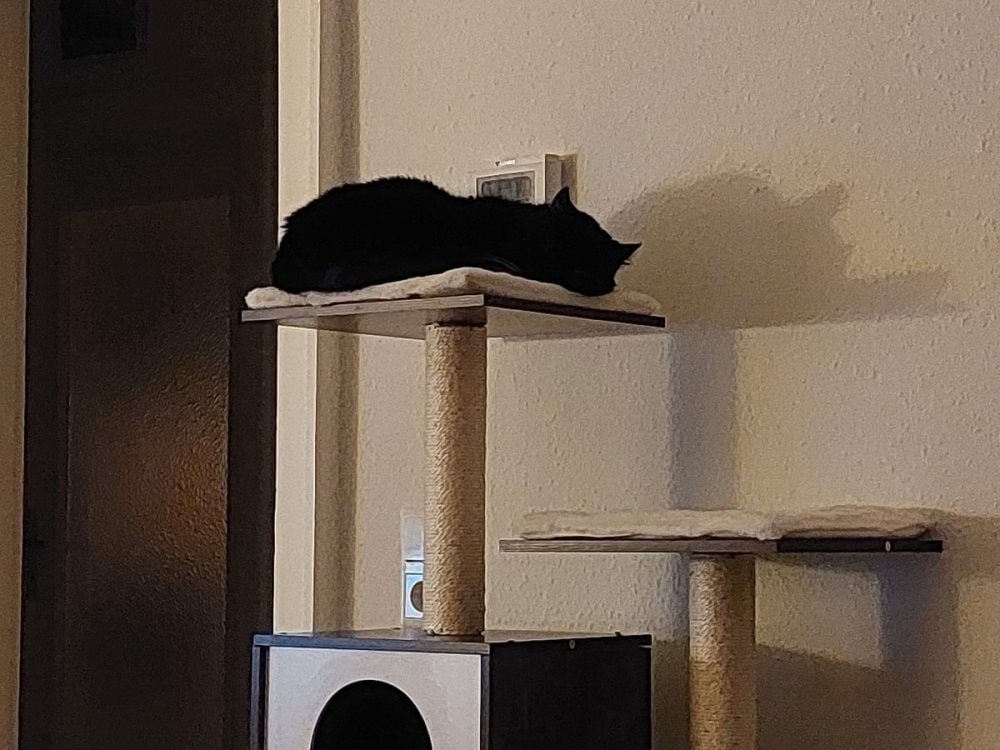 Ihr wisst ja wie ich bin, aber ich werde in meinem neuen Zuhause auch so genommen. Nach anfänglichen Fressproblem, auch das kennt ihr von mir, habe ich hier leckeres Futter. Allerdings muss ich laut der neuen Tierärztin ein bisschen auf meine Figur achten. Finde ich zwar Quatsch, aber mein neuer Dosenöffner will sich daran halten. Ich habe aber auch viele neue Sachen bekommen, Spielzeug, da muss ich aber echt Lust zu haben, und einige Bettchen. Mein liebster Platz ist der Kratzbaum, da schlafe ich sehr gerne drauf.