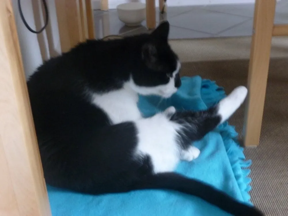 Hallo, ich wollte mich mal bei euch melden, bin ja nun schon zwei Monate hier und heiße inzwischen Molly, was mir auch persönlich viel besser gefällt, denn schließlich bin ja gar nicht so mopsig, oder? Zumal hier streng auf mein Futter geachtet wird, leider, da hilft alles Miauen und trauriges Gucken nicht. Außerdem denken sich meine neuen Mitbewohner zusätzlich zu meinem Fummelbrett so komische Sachen aus. Da muss ich über ein Bein springen oder die Treppe hoch und runter laufen, um an das Futter zu kommen, außerdem soll ich nach draußen in den Garten und das will ich gar nicht unbedingt. Wenn es dann drinnen was zu fressen gibt, verpass ich das ja. Aus diesem Grund halte ich mich auch am liebsten in der Küche auf. Und wenn dann mal eine Schranktür offen bleibt, wie heute Morgen spazier ich doch gleich hinein. Ich bin nämlich total neugierig. Da war dann ein kleines Loch in der Wand und eine dunkle Nische dahinter mit lauter Rohren und Kabeln, da habe ich mich kurzerhand durchgezwängt. War auch sehr aufregend, nur leider kam ich nicht so leicht zurück. Meine Mitbewohner waren total aufgeregt, haben mich gerufen und mein leckeres Futter an das Loch gehalten. Ja und dann habe ich alles gegeben und wurde gepackt und gezerrt und war wieder frei. Da waren doch alle sehr erleichtert, hihi.