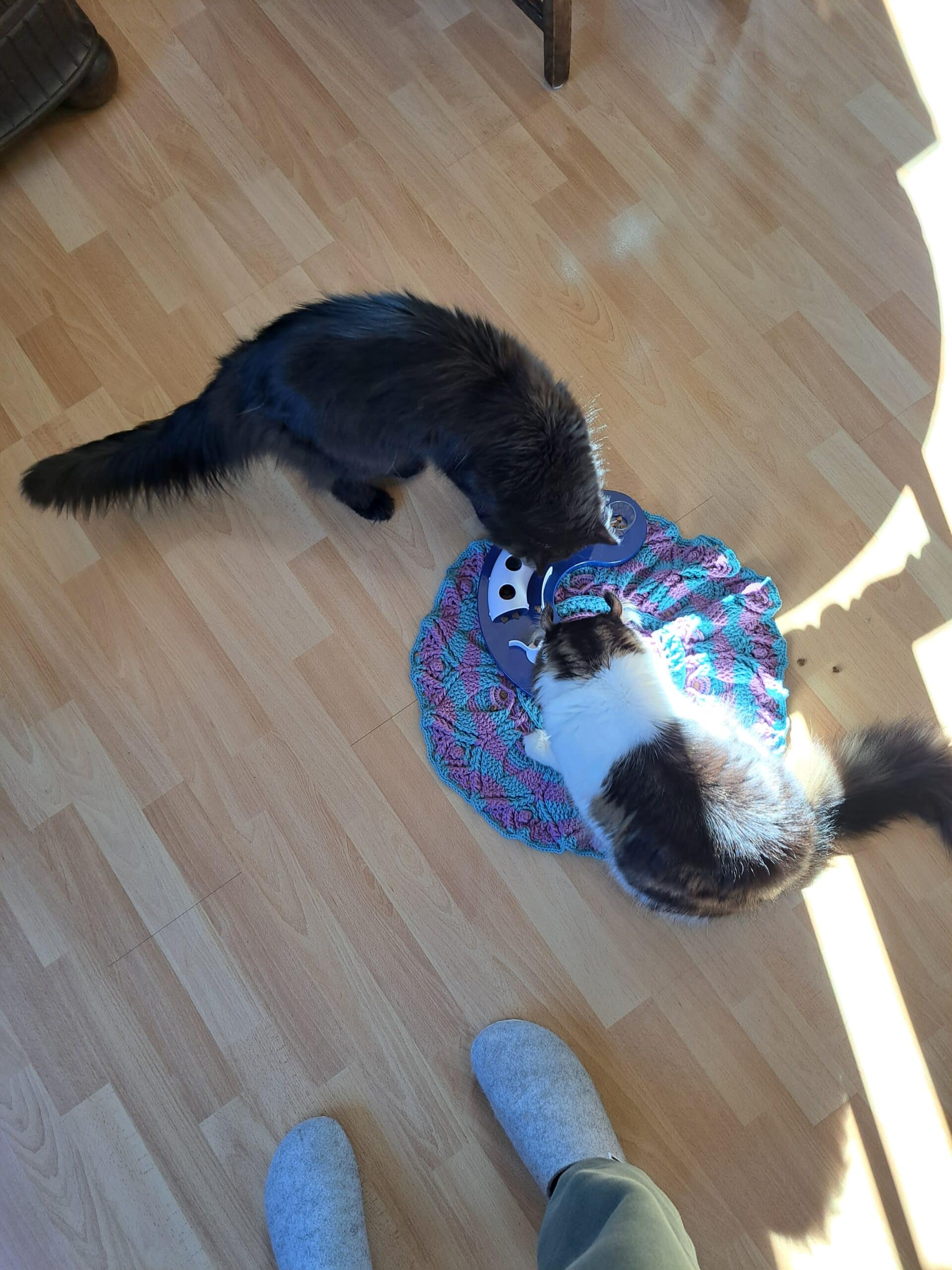 Die zwei Jungs sind seit einer Woche bei uns und wir würden sie nie wieder hergeben. Sie toben durch das Haus und kuscheln aber auch genauso gerne mit uns und miteinander. Es ist richtig schön. Blue ist ein kleiner Fresssack,was aber natürlich nicht schlimm ist. Aufgrund seiner Zahn OP hat er wohl einiges nachzuholen. Selbst mit unserer Hündin kommen die Beiden gut klar. Blue hat ein bisschen Respekt vor ihr,dafür Tony gar nicht. Da hat sie eher Respekt vor ihm. Alles in allem sind wir jetzt ein tolles Team. Dankeschön an euch.