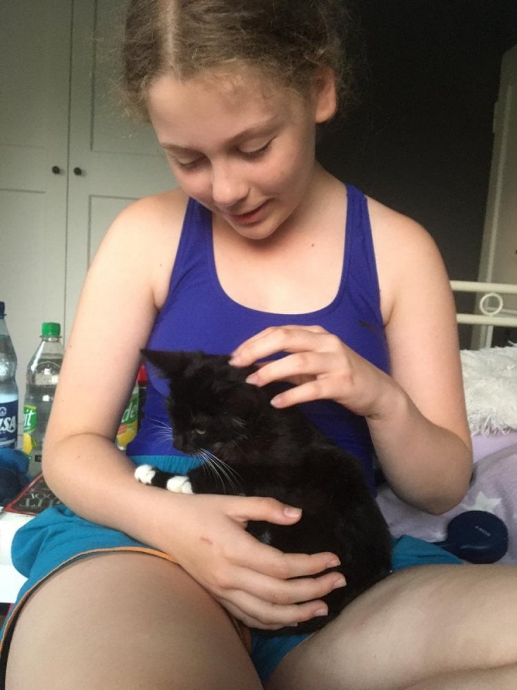 Ich bin ja eher der zurückhaltende Typ, aber inzwischen habe ich herausgefunden, dass sie ein Talent zum Kraulen und Kuscheln haben. Besonders die Jüngste gefällt mir gut; ich habe mich sogar dazu entschieden, mich zum Schlafen bei Ihr einzumuckeln.