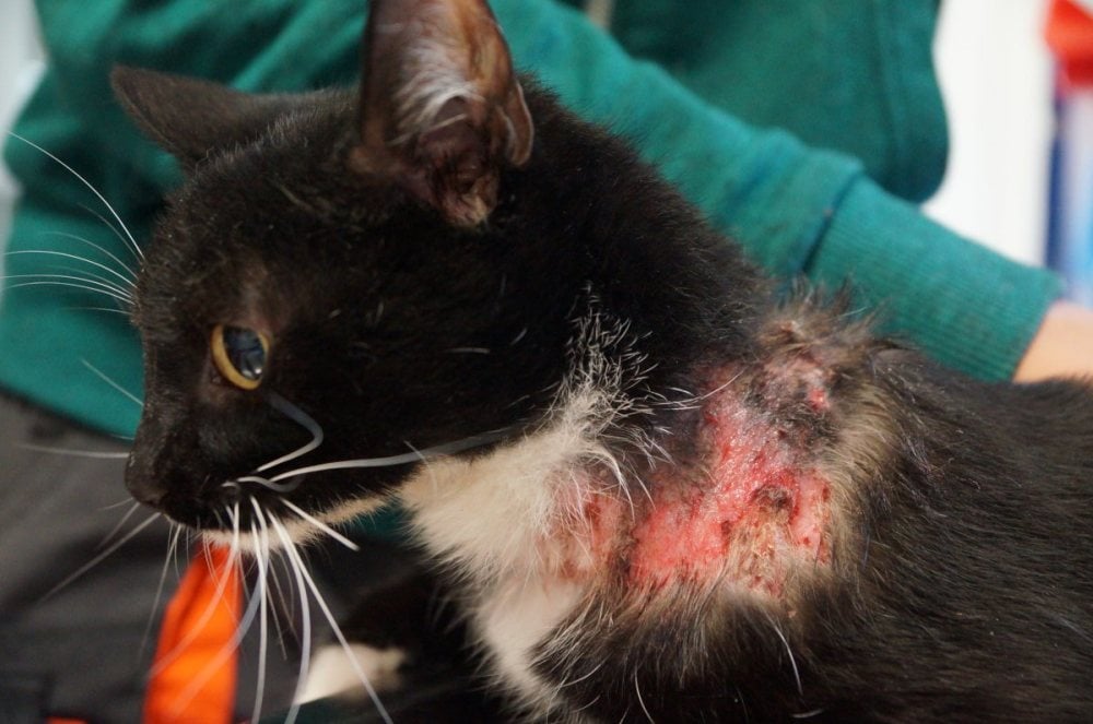 Nun hat die Maus einen festen Verband um den Nacken bekommen, damit sie sich nicht noch blutiger kratzt und wir hoffen, dass es ihr mit der Behandlung schnell besser geht!