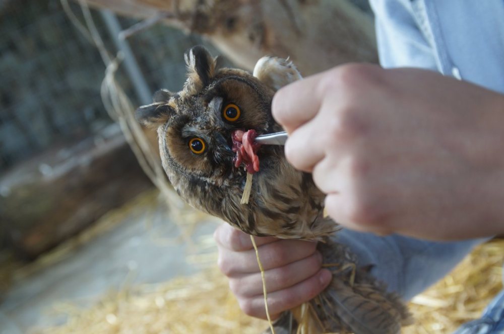 Die junge Waldohreule Forstie wurde gefunden und abgegeben. Leider will sie einfach nicht selbstständig fressen. Sie wohnt nun im Alice im Wunderland Gehege und wird jeden Tag von Tierpfleger Benny mit lecker Maus gestopft. Wir hoffen sehr, dass sie irgendwann anfängt, allein zu fressen, damit wir sie wieder in die Natur entlassen können und sie ein frohes Eulenleben leben kann.