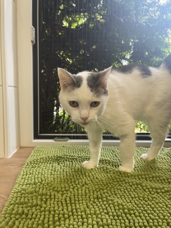 Gertraud ist eine Abgabe Katze, die an Nierenversagen leidet. Nierenversagen ist eine ernsthafte Erkrankung, bei der die Nieren nicht mehr richtig funktionieren und Giftstoffe nicht mehr aus dem Körper entfernt werden können. Nachdem sie einige Tage beim Tierarzt verbracht hat, durfte sie wieder ins Tierheim zurück.