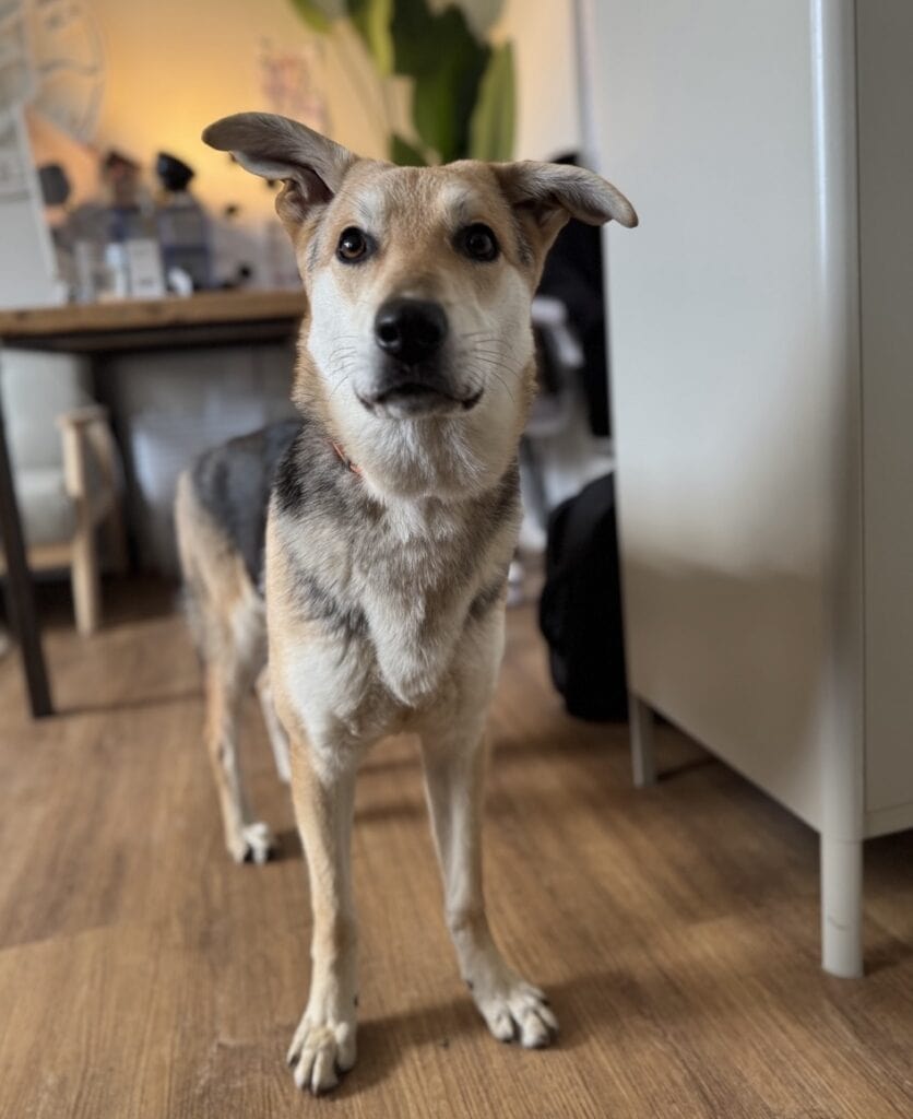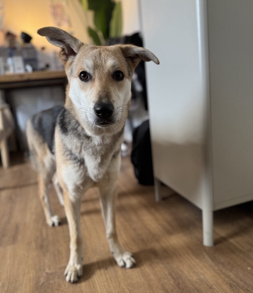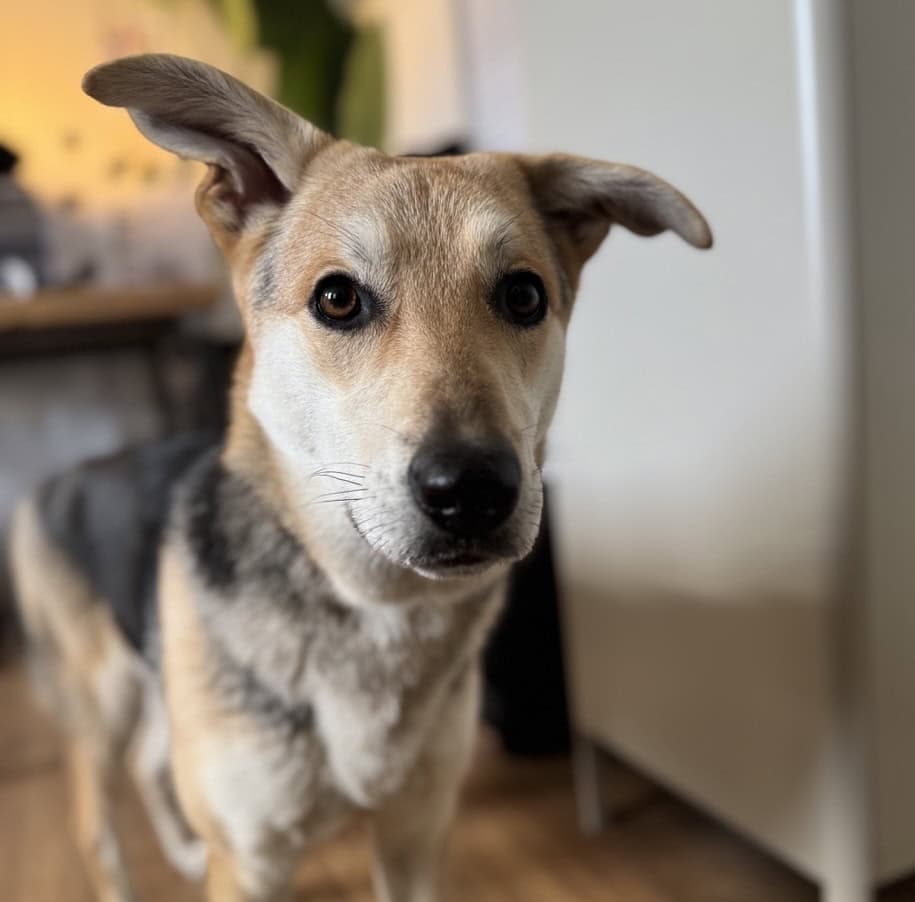 Ich bin die Irmi! Ich bin 8-9 Monate jung und ein Schäferhund-Mix, also ein wenig wachsen werde ich wohl noch. Vielleicht kennt ihr mich schon aus den Videos mit Cooper und Chico, oder von Fotos oder Stories. Ursprünglich bin ich mit meinen Hundefreunden Cooper, Chico und Alma von einem Hof übernommen worden, wo wir mit vielen Hunden in Gruppen gelebt haben. Doch es wurden einfach zu viele Hunde, und so mussten ein paar von uns ihre Reise in neue Wirkungskreise antreten.