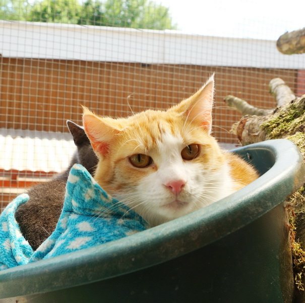 Hans wohnt heute in der Gruppe, hat sich hier mit Kater Harry angefreundet und freut sich auf Besuch!