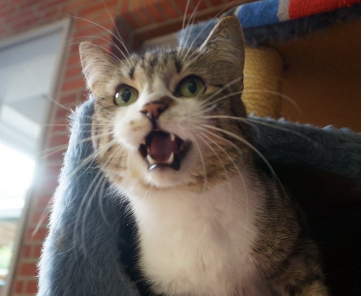 Emma ist endlich wieder gesund. Weil sie wegen ihrer schlimmen Herpesinfektion nichts mehr fressen mochte, musste sie sogar ein paar Tage an den Tropf gehängt werden und stationär in die Tierarztpraxis aufgenommen werden. Heute ist sie wieder gänzlich genesen und darf wieder die Katzengruppe unsicher machen.
