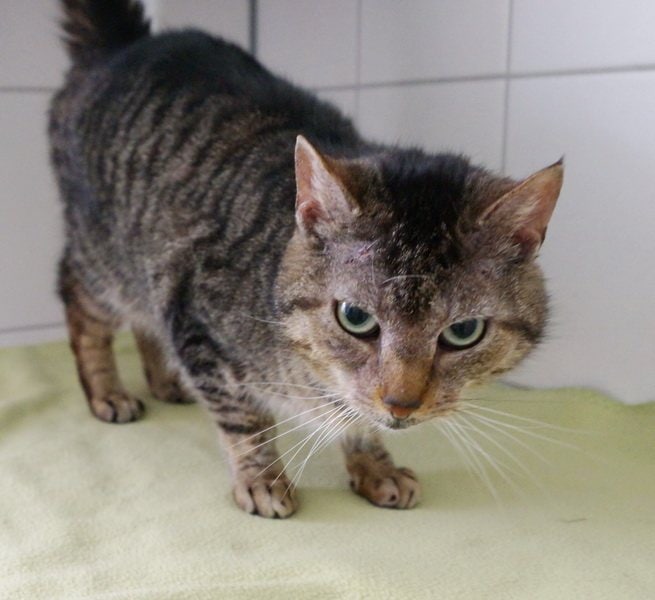 Kater Lothar kommt mit eine großen Schürfwunde auf der Stirn ins Tierheim. Auch sein weiterer Zustand lässt zu wünschen übrig. Die Untersuchung beim Tierarzt ergab aber glücklicherweise keine weiteren Ãberraschungen – seine schlechte Haut und auch der Rest werden bei liebevoller Pflege von alleine wieder schön. Tapferer Lothar, bald geht’s dir wieder besser!