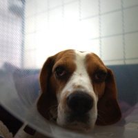 Beagle Oskar in der Genesungsphase! Beagle Oskar in der Genesungsphase! Nach Oskars Augen OP braucht er leider immer noch 4x tägl. Augentropfen, die er sich gar nicht gerne geben läßt. Ein täglicher Kampf, der aber erste Erfolge zeigt :) Seine Augen heilen schon gut ab.