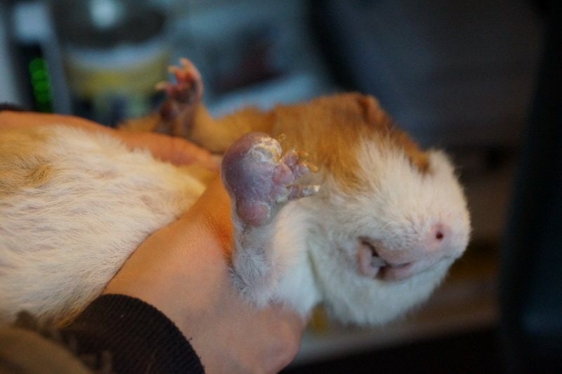 Mazda hatte plötzlich einen ganz dicken Fuß und wurde unverzüglich dem Tierarzt vorgestellt. Der hat ihn geröngt und heraus stellte sich, dass der alte Herr sich u.a. eine Zehe gebrochen hat. Diese wurde jetzt amputiert und heute darf er wieder zurück in sein Zuhause.