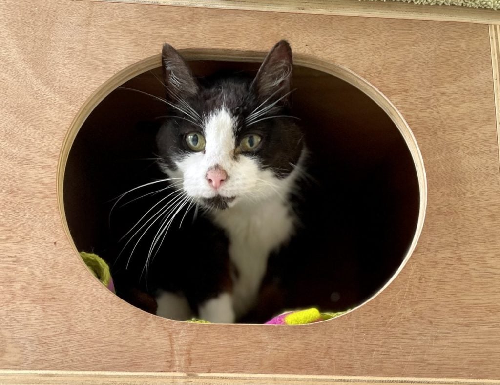 Als Bea mit ihrem Freund Barnabas ins Tierheim kam, war sie in keinem guten Zustand. Sie war total verfilzt und das Auge war total verklebt. Das hat sich unsere Tierärtzin natürlich sofort angeguckt und hat Augensalbe verschrieben. Nach eingen Tagen Augensalbe wurde es deutlich besser. Nun warten Barnabas und Bea auf ihren Auszug.