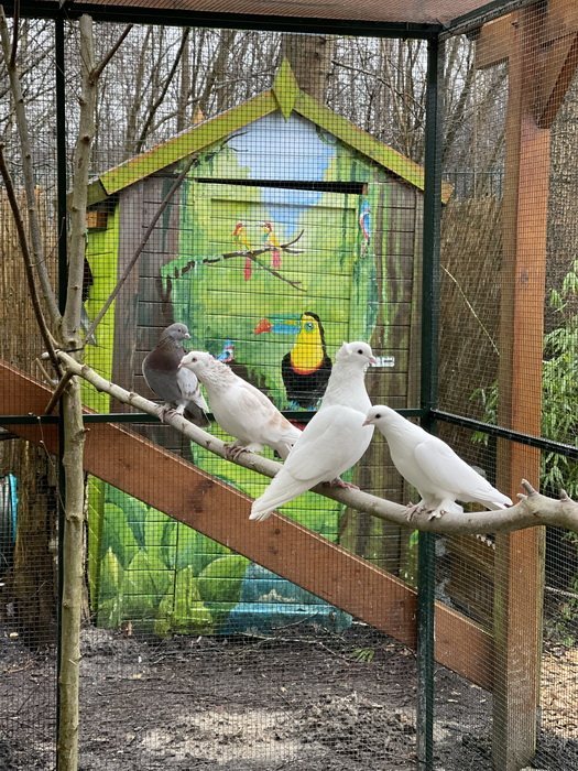 Nachdem unsere Tauben leider über längere Zeit in einer etwas kleineren Voliere gewohnt haben, ist es endlich so weit. Die Umbauarbeiten an der eigentlichen Tauben Voliere sind fertig, sodass sie jetzt wieder bezogen werden kann. Dort haben die Tauben platz zum Fliegen.