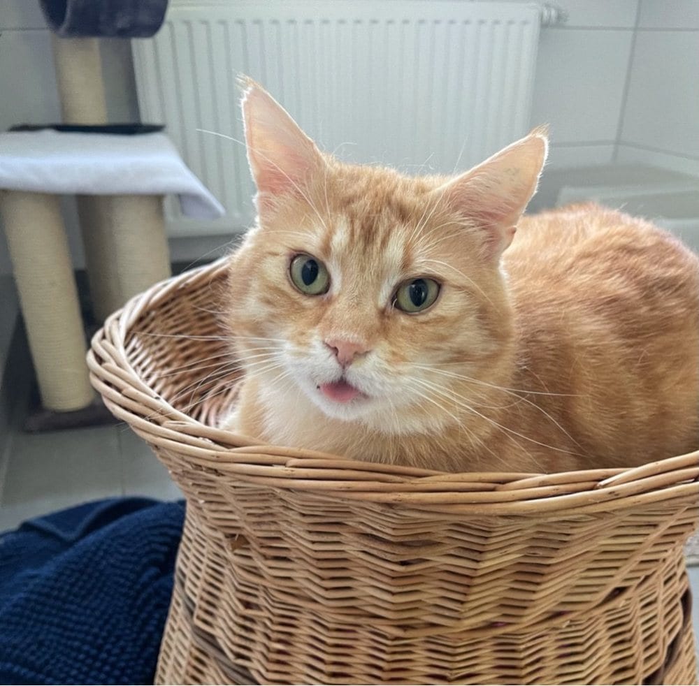 Kater Bjarne und sein chronischer Schnupfen sind immer noch bei uns im Tierheim. Der liebe Kerl mit der charismatisch raushängenden Zunge bewohnt ein Krankenzimmer, damit der Schnupfen, seine kaputte Lunge und er stetig überwacht werden können. Er musste aus dem Katzenhaus wieder in die Quarantäne, weil er wieder tüchtig geschnieft hat.