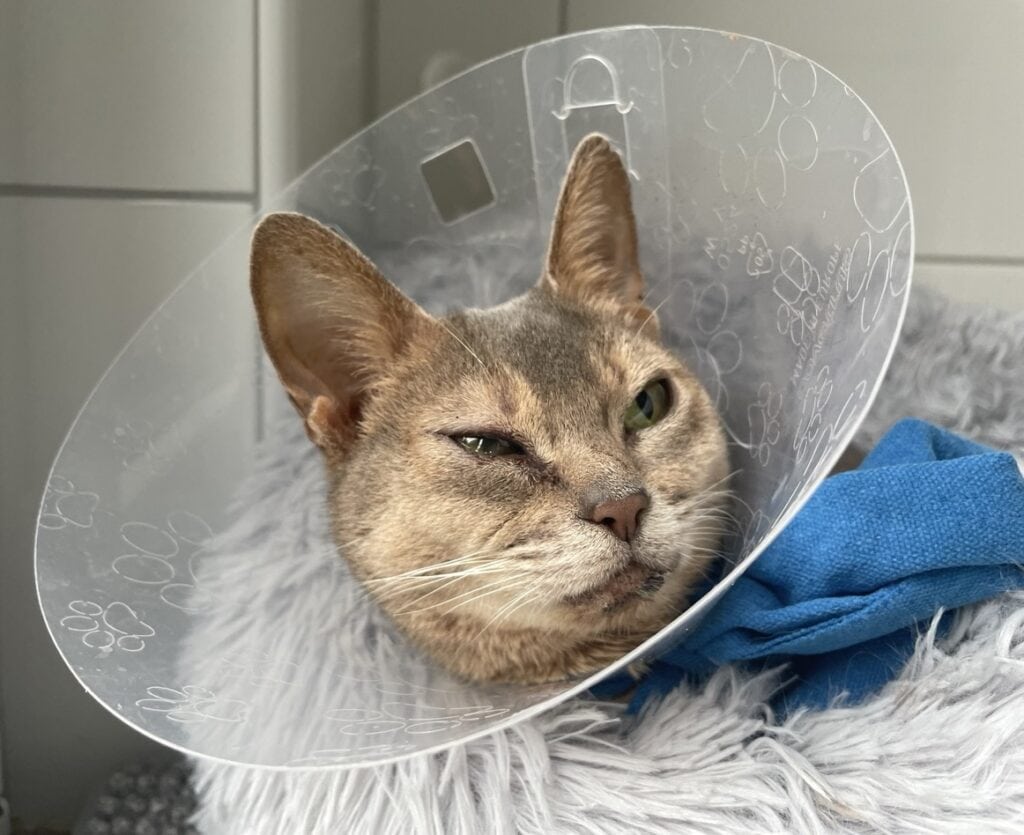 Der süße Fundkater Link ist bei der Eingangsuntersuchung durch ganz verklebtes Fell auf der Stirn aufgefallen. Vorsichtig haben wir es auseinander gebürstet, da haben wir schon den Schorf auf der Haut entdeckt und ein rotes Loch gefunden. Ob Link sich mit einer anderen Katze geprügelt hat oder sonstwie einen Unfall hatte, können wir nicht mehr […]
