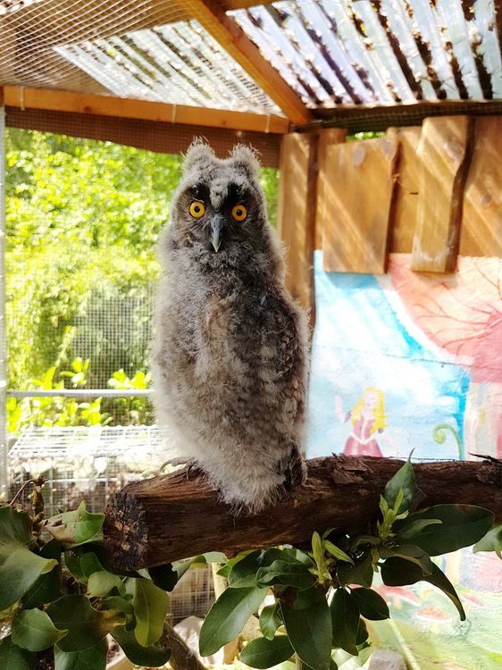 Klein Fokko wird langsam größer. Unsere Waldohreule ist wirklich ein süßer Kerl. Weil er jetzt das Fliegen lernen möchte, durfte er endlich in eine Voliere umziehen, in der er sich sichtlich wohl fühlt. Neugierig beobachtet er alles, was um ihn herum auf dem Gelände passiert. Kleiner hübscher Fokko â?¤ï¸?