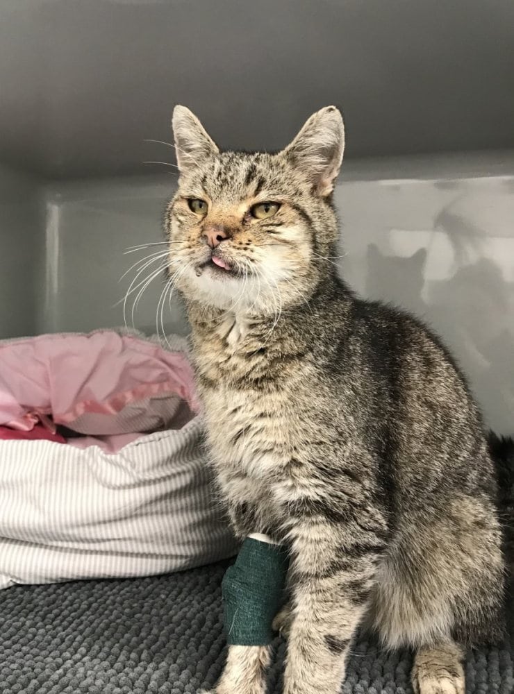 Fundkater Herbert wurde wegen seines eitrigen Schnupfens dem Tierarzt vorgestellt. Leider hat Herbert nicht nur einfach eine Erkältung, sondern sehr schlechte Zähne. An einem dieser Zähne hat sich eine Fistel gebildet, die den schleimigen Schnodder produziert hat, wegen dem Herbert zu Social Media Bekanntheit gekommen ist. Die Zähne wurden saniert und zum Teil gezogen. Leider hat Herbert zusätzlich Katzenaids und eine polyzystische Niere. Er wohnt in der Krankenstation, wo er erstmal gepäppelt und behandelt wird. Wir hoffen, er wird seinen Schnupfen los und findet trotz allem ein Zuhause.
