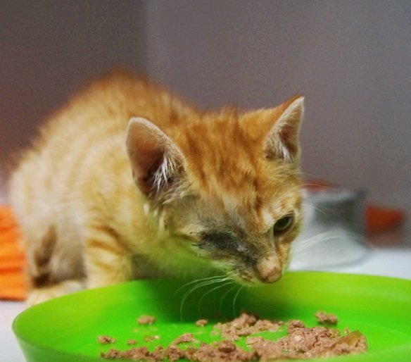 Dem kleinen Kater Hook ist vor einiger Zeit ein Auge entnommen worden, da es sich schlimm entzündet hatte und beinah aus seiner Höhle gefallen wäre. Mittlerweile geht es Hook wieder sehr, sehr gut, er ist gesund und munter und kann auch mit nur einem Auge gut sehen. Der kleine Mann muss noch einen Trichter tragen, damit er sich die Wundnaht und die Fäden nicht aufkratzt, aber auch damit hat er sich arrangiert.
