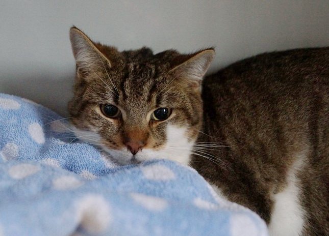 Kater Jigger hat Atemprobleme und schnieft und hustet. Weil ihm das Atmen so schwer fällt, musste er schnell zum Tierarzt. Dieser hat eine Lungenentzündung diagnostiziert, sodass Jigger nun in einer warmen Quarantänebox behandelt wird, bis er wieder gesund ist.