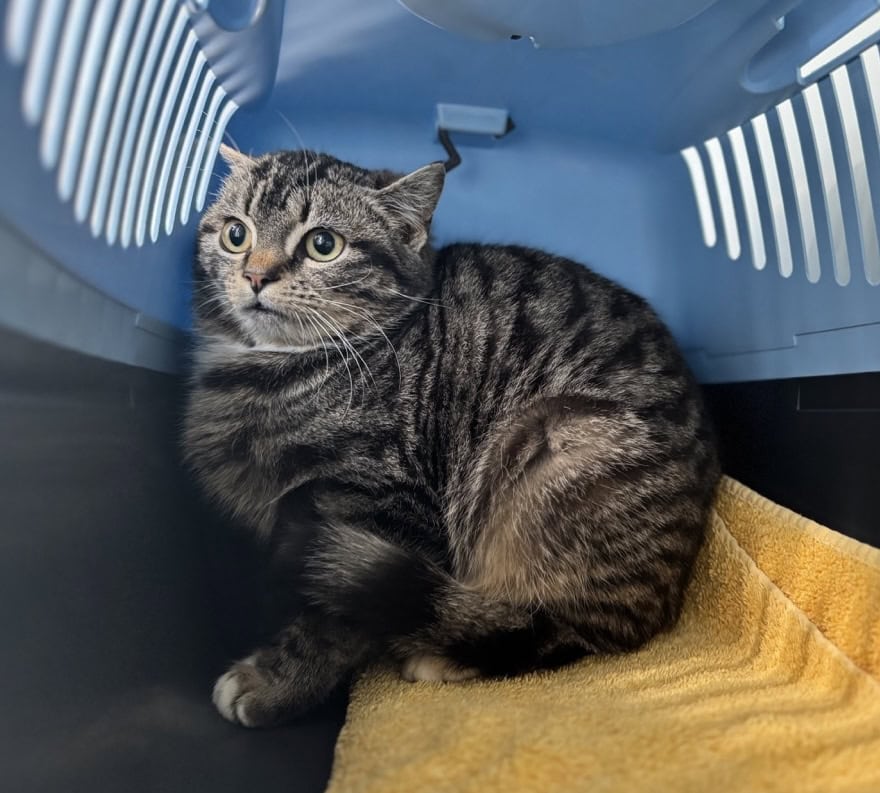Fundkatze Kartoffel ist noch recht jung und hat sich wahrscheinlich im Winter bei dem kalten Wetter eine Erkältung eingefangen. Weil sie nicht behandelt worden ist und weiter draußen herumstromerte, wird diese Erkältung sich in eine Lungenentzündung verwandelt haben. Zum Glück ist Kartoffel seit einigen Tagen bei uns und kann nun endlich behandelt werden. Aufgefallen ist sie uns durch ihre lauten Atemgeräusche.