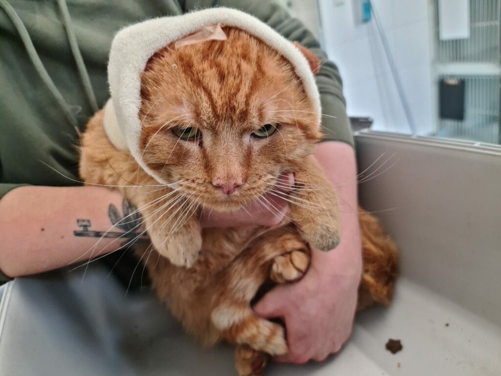 Seit Samstag ist unser süßer Kater Puschi bei uns im Heim. Er hat eine sehr große Wunde hinterm Ohr, und am Sonntag rauschte gleich unsere treue ehrenamtliche Karima vorbei, um die Wunde zu säubern und zu begutachten. Nun müssen wir täglich ran und freuen uns über diesen lieben, kooperativen und einfach nur absolut süßen Gast, dem wir dank euch helfen können.