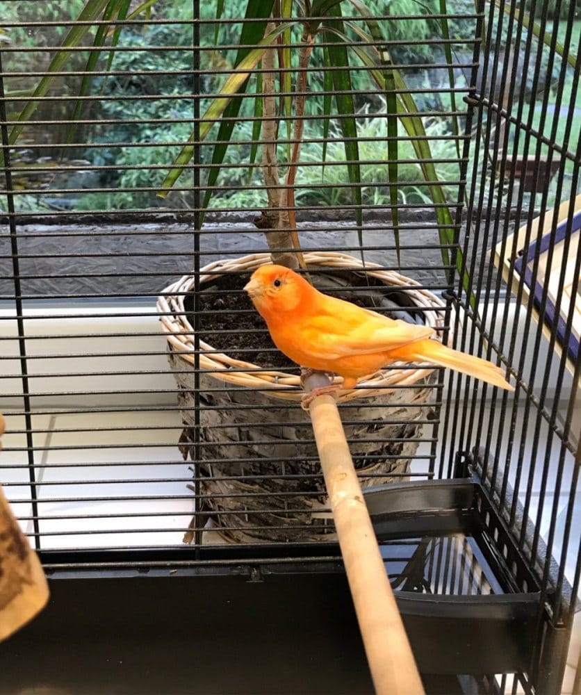 Der kleine Kanarienvogel hat ein zugeschwollenes Auge und kann nicht gucken, wohin er fliegt. Die Entzündung wird nun mit Schmerzmitteln, einem Antibiotikum und einer täglichen Augenspülung behandelt. Dafür müssen wir den kleinen Flattermann täglich aus seinem Käfig fangen und die Medikamente in den Schnabel geben. Das ist zwar Stress, jedoch können wir jetzt schon einen Fortschritt sehen.