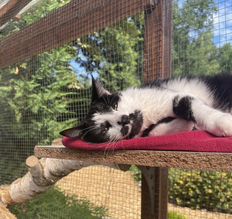 Klex ist ein Fundkater und kam zu uns ins Tierheim, als der Tierarzt gerade bei uns war. Schnell hörte man, dass er Probleme beim Atmen hat, worauf der Tierarzt ihn direkt mit in die Praxis nahm. Dort wurde seine Lunge einmal geröntgt und man konnte direkt sehen, woher seine Atemnot kam. Klex hat leider Asthma, weshalb er ein Medikament gespritzt bekam. Jetzt mussten wir im Tierheim beobachten, ob sich seine Atmung nach 10 bis 14 Tagen wieder verschlechtern würde. Das war leider auch der Fall, aus diesem Grund bekommt er das Medikament vom Tierarzt in Tabletten vorm ins Futter. Mit ruhe und geduld wird jetzt die perfekte Dosis für Klex gesucht.